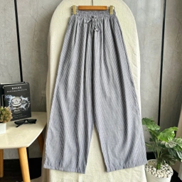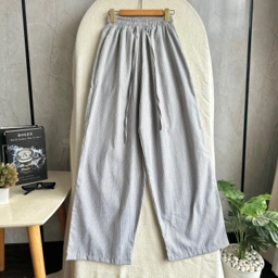 Material Cotton stripe. Karakteristik bahan ringan, adem dan menyerap keringat dengan pola garis vertikal. Full karet dibagian pinggang jadi gak akan bikin begah.